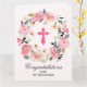 Ein elegantes rosa Kreuz, umgeben von einem Aquarellkranz aus Blume, hebt diese religiöse Grußkarte hervor. Ideal für eine erste Kommunion, Taufe oder Taufe. Personalisieren Sie den Gruß innerhalb oder verlasse, wie es ist. PASSENDE Artikel in unserem Shop erhältlich.