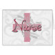 Rosa Wirbler Krankenschwestertext, mit einem rosa Kreuz und einem weißen und grauen Wirbel im Hintergrund. Ein reizendes Geschenk für die neue Krankenschwester, den Krankenpflegeschulstudenten oder das berufliche mit einer Krankenpflege oder einer medizinischen Karriere in einem Krankenhaus oder in Büro Doktors. Sehr hübscher und weiblicher Entwurf. Alles entwirft Copyright © www.CuteComfy.com 2012