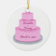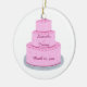 Die Malerei eines drei gestuften rosa Kuchens mit hellrosa Herzen und dunkelrosa Zierteilen, das auf einem silbernen Tisch mit Platzhaltern für Ihren Text steht, wird auf individuellen Ziergegenständen gedruckt. Der Text lässt sich leicht anpassen und mit dem Kuchen koordinieren. Vielen Dank für Ihr Interesse an CherylsArt auf Zazzle.