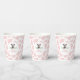 Diese bezaubernden Papiertassen sind mit einer süßen Babykuh mit einer Blume auf ihrem Kopf und einem spielerisch weichen rosa Kuhmuster ausgestattet.