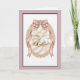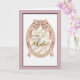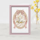 Eine weiche und elegante Osterillustration mit einem sanften weißen Lamm, das auf Stroh ruht und einen strahlenden Heiligenschein trägt, symbolisiert das Lamm Gottes und die Botschaft des Glaubens, der Unschuld und der Erneuerung, die zu Ostern gefeiert wird. Das Lamm ist in einem zarten, vintageartigen ovalen Spitzenrahmen eingefasst, der mit einer eleganten rosa Schleife und floralen Akzenten verziert ist. Die pastellfarbenen Töne und der dekorative Rahmen schaffen ein charmantes und friedliches Design, perfekt für eine persönliche Ostergrußkarte, die Hoffnung, Liebe und spirituellen Segen ausdrückt.