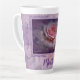 Geben Sie Ihrer Mutter diese wunderschöne "Eine von einer Art" rosa Mutter Tag Latte Tasse! Es verfügt über eine wunderschöne rosa Rose, umgeben von Gipskraut-Blume...eingebettet in einem Lila, rosa Hintergrund mit einem Spitzen-Border! Original Grafikdesign von Künstler Kerry Miller