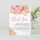 Ein romantisches Dankesdesign zum Abschluss, das handgemalte Wasserfarben-Blumen in Rosa, Lavendel, Pfirsich, Goldgelb und zartem Grün zeigt. Der luftige weiße Hintergrund hält das Layout elegant und modern, während die fließende Schrift in Rosa Wärme und Persönlichkeit hinzufügt.