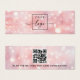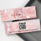 Mini Ohrring-Display-Karte mit zentrierter, benutzerdefinierter Logo-Vorlage und QR-Code auf einem hellrosa Hintergrund mit weichen Glitzer-Leuchten. Die Ohrring-Hilfslinien können durch Hinzufügen und Entfernen von Leerzeichen im Vorlagenfeld und durch Verschieben des gesamten Elements im Entwurfstool eingestellt werden.