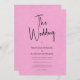 Whimsical minimalistische moderne, anpassbare schwarze Skript Typografie, Hochzeit Einladung. Die hellrosa bedruckte Leinentextur verleiht dem Ganzen eine Touch Bio Eleganz. Andere Farben sind verfügbar.