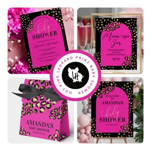 Feiern Sie mit einer Mama-Osa-Bar und zeigen Sie dieses rosa und leoparden Print Mom-osa Bar Schild. Dieses Schild mit einer schönen rosa, goldenen und schwarzen Farbpalette ist perfekt für eine kleine Dusche. Das spielerische und elegante Design wird die Aufmerksamkeit Ihrer Gäste erwecken und Set für eine festliche Feier.