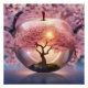 Bilder ist ein lichtdurchlässiger Apfel mit einem Apfelbaum innen mit rosa Apfelblüten Hintergrund.