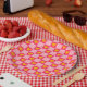 Rosa Liebe des roten Gelbherzes Y2K Muster überprü Pappteller
