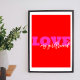 Rosa LIEBE ( fügen Sie Ihren Text hinzu) Neon Red Poster