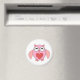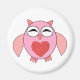 Dieser Magnet zeichnet sich durch einen niedlichen Cartoon einer rosa Eule mit schläfrigen Augen, einem kleinen Schnabel und niedlichen kleinen Füßen aus. Die Eule hat ein großes Herz aus roter Liebe inmitten ihres Bauches und die Flügel sind weit offen, um jemanden zu umarmen.