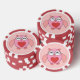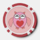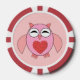 Dieses phantastische Set von Poker-Chips verfügt über einen niedlichen Cartoon einer rosa Eule mit schläfrigen Augen, einen kleinen Schnabel und niedliche kleine Füße. Die Eule hat ein großes Herz aus roter Liebe inmitten ihres Bauches und die Flügel sind weit offen, um jemanden zu umarmen.