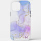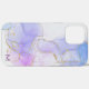 Ein abstraktes Design mit feinen, rosa, lila und blauen Alkoholtupfern auf weißem/blassgrauem Hintergrund, das durch ein metallisches Goldüberlagern ausgeglichen wird. Personalisieren Sie mit einem Initial.