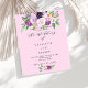 Ein rosa Hintergrund. Die Einrichtung ist mit lila Blume und Grünpflanzen in Aquarellen gestaltet. Personalisieren und fügen Sie Ihre Namen und Party-Details. 1 Blatt = 1 Einladung mit Druckkante bis Kante.