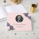 Elegantes lila und rosafarbenes Begräbnis-Foto-Gästebuch mit einem Foto und lila und rosa Rosen und Baby's Atem Blume.