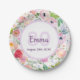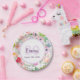 Sommer und Garten themed Design, bohemian, boho Stil für eine 80. Sommer Geburtstagsfeier. Weiche, feminine Blume in Rosa und Pfirsichfarben mit grünen Blätter auf weißem Hintergrund. Vorlage für lila Buchstaben, Alter und Datum.