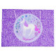 Diese Geschenktasche zeichnet sich durch ein niedliches Einhorndesign mit Imitaten lila Glitzer Hintergrund aus. Personalisieren Sie es mit einem Namen.