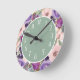 Rosa Lila Farbe Grün der Blütenfarbe Runde Wanduhr