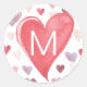 Mit diesem niedlichen Aufkleber, der ein Aquarellpinken, rote und lila Herzen und ein Monogramm enthält, können Sie Umschläge mit Liebe versehen oder Beutel bevorzugen.