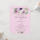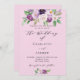 Ein rosa Hintergrund. Die Einrichtung ist mit lila Blume und Grünpflanzen in Aquarellen gestaltet. Personalisieren und fügen Sie Ihre Namen und Party-Details. Zurück: Fügen Sie Ihre Hochzeitswebsite url zum QR-Code für Details hinzu.