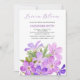 Elegante und schlichte Bridal-Dusche mit rosa lila Geranin-Blume und lebendigem Kalligrafietext.