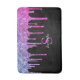 Genießen Sie dieses elegante Design mit Ihrem Namen und Monogramm oder initial mit schicken und funkelnd rosa, lila und blauen Glitzer-Tropfen auf einem schwarzen Hintergrund.
