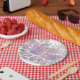 Rosa Lila Lichtfarbe Grüne Blütenfarbe Pappteller