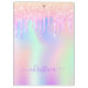 Ein angesagter holografischer Hintergrund mit Einhorn- und Regenbogenpastellfarben in Rosa, lila, Minzgrün. Dekoriert mit rosa und lila Tropfen. Lila Buchstaben. Personalisieren Sie Ihren Namen und fügen Sie ihn hinzu. Der Name wird mit einem modernen handgeschriebenen Stilskript mit Swashes geschrieben. Um die Swashes behalten, löschen Sie nur den Beispielnamen, verlass die Leerzeichen oder Emoji's vor und nach dem Namen.