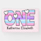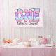 Feiern Sie einen schönen ersten Geburtstag mit diesem süßen Design! Der Hintergrund ist weich rosa und die Worte "ONE" in rosa, lila und blau. Dieses Design passt leicht zu den Dekorationen für eine perfekte Geburtstagsfeier! Von CaperuzaSketch verwendeter Clipart.