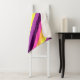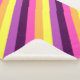 Eine kleine Sherpa-Decke in niedlicher, farbenfroher Musterung aus diagonalen Streifen in Pflaume lila, Lavendel, Zitronengelb, Melonorange und heller Magenta.