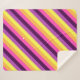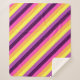 Eine mittelgroße Sherpa-Decke mit niedlichem, farbenfrohen Muster aus diagonalen Streifen in Pflaume lila, Lavendel, Zitronengelb, Melonorange und heller Magenta.