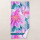 Ein luxuriöses Badetuch-Set mit elegantem rosa, lila und aquamarinen Aquarelldesign und einem Raum für Initialen. Das ist ein perfektes Geschenk für ein frisch verheiratetes Paar.