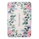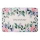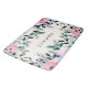 Eine Badematte mit hübschem Blumendesign in Aquarellfarben. Rosa, lila und grüne Blume.