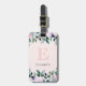 Gepäckanhänger mit hübschem Blumendesign in Aquarellfarben. Rosa, lila und grüne Blume.