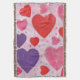 Originelle Kunstwerke aus Bleistift, Acryl, Lack und Aquarell. Lila, rosa und rote Valentinherzen. Valentinstag Design.