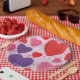 Originelle Kunstwerke aus Bleistift, Acryl, Lack und Aquarell. Lila, rosa und rote Valentinherzen. Valentinstag Design.