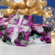 Rosa lila weißes Mit Blumenschwarzes der Geschenkpapier