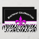 Lass die guten Zeiten rollen mit dieser trendigen rosa Lilie Zebra Muster Geburtstagseinladung. Das Farbschema in Rosa, Schwarz und Weiß besteht aus einem zweifarbigen Schwarz- und Zebramuster-Hintergrund, geteilt durch ein fuchsienrosa Lilie-Symbol. Personalisieren Sie die Rückseite mit Ihren Party-Informationen.