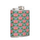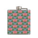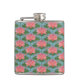 Eine wunderschöne Hip Flasche mit einem Muster aus rosa Wasserlilien und blauen Libellen, aus einer handbemalten Papiercollage von Judy Adamson. Ein wunderschönes Geschenk für jemanden mit einem Geburtstag im Juli, Teil der Posh & Painterly 'Lily Pond' Kollektion.