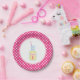 Geburtstags-Party-Papier-Teller der niedlichen rosa Polkapunkt-Limonade themed erster. So süß für ein kleines Mädchen! Einige Grafiken durch www.jwillustrations.com