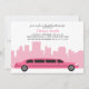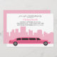 Stilvolle Einladungen bieten eine schicke Vektorgrafik einer rosa Limousine auf einem hellrosa Skyline-Hintergrund. Ideal für Junggeselinnen-Abschiede, Brautpartys, Party zum 21. Geburtstag, Cocktail-Party, Girls Nachtschwärmer und vieles mehr! Besuchen Sie unseren Shop für passende Produkte.
