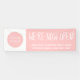 Elegantes Drehbuch rot rosa "wir sind jetzt offen" Business-Banner mit einem Logo für einen Salon, Nagelladen, Boutique, Einzelhandel, Ziegelstein und Mörtel. Girly Design, um potenziellen Kunden zu zeigen, dass Sie jetzt offen sind.