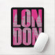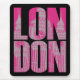 Der Rosa-London-Entwurf enthält drei grafische Beschreibungen von Big Ben in einer hellgrauen Farbe, auf einen großen, mutigen und hellen rosa Schriftart. Die Buchstaben, die das Wort London buchstabieren, werden gestapelt. Zeigen Sie Ihre Liebe für London mit dem rosa London-Entwurf.