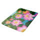 Ursprünglicher Entwurf der feinen Kunst der hübschen rosa Lotos Wasserlilie-Blumen durch Künstler Carolyn McFann zwei des schnurrenden Katzen-Studios druckte auf einem Weiche, Qualitätsbadmatte.