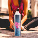 Rosa Lotus-Blume schweben auf Kristallblau Edelstahlflasche