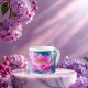 Rosa Lotus-Blume schweben auf Kristallblau Espressotasse