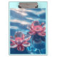 Rosa Lotus-Blume schweben auf Kristallblau Klemmbrett