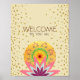 Das ist ein schönes Poster mit einer Größe von 8 x 10 Zoll, das die Aquarelllotus-Blume hat, wo der Hintergrund einer goldgelben, kreisförmigen Form mit Damast-Kurven, die an goldenen Punkten, die von oben herabfallen, wie ein Konfetti-Stil, elegantes Aussehen verleihen wird.
