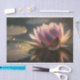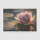 Ein schönes Papiertuch mit einem nahen Foto eines schönen rosa Lotus, der im Morgenlicht blüht.