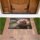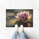Eine hübsche Türmatte mit einem Foto eines schönen rosa Lotus, der im Morgenlicht blüht.