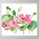 Rosa Lotus Wasserfarbengrenze Poster